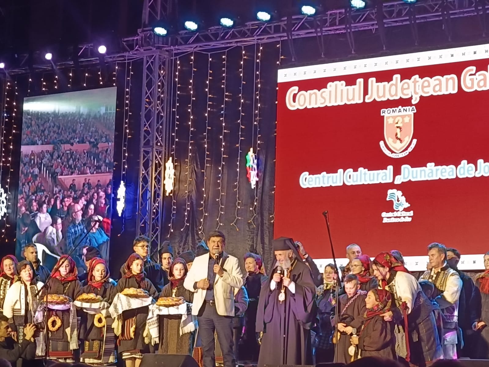 Cu o sală ocupată în totalitate, vestea minunii nașterii Domnului preabun a avut ecouri în inimile gălățenilor, care, în frunte cu ÎPS Arhiepiscop Casian de la Catedrala Dunării de Jos, au cântat colind înălțător în Galațiul preschimbat în lumină și locaș sfânt. Înalt Preasfinția Sa a aminitit că nicăieri în lume nu se mai aude glasul Domnului atât de puternic ca în România și a făcut apel la unitatea de neam în așa fel încât toți, pe oriunde am fi răsfirați prin diaspora, să ne întoarcem de sărbători acasă să trăim românește. Totodată, Președintele Consiliului Județean Galați, Costel Fotea, ne-a încurajat „să ducem tradiția mai departe. E bine că v-ați adus și copiii să vadă autenticitatea poporului român și cum reușește acesta să supraviețuiască doar prin tradiție și unitate.”